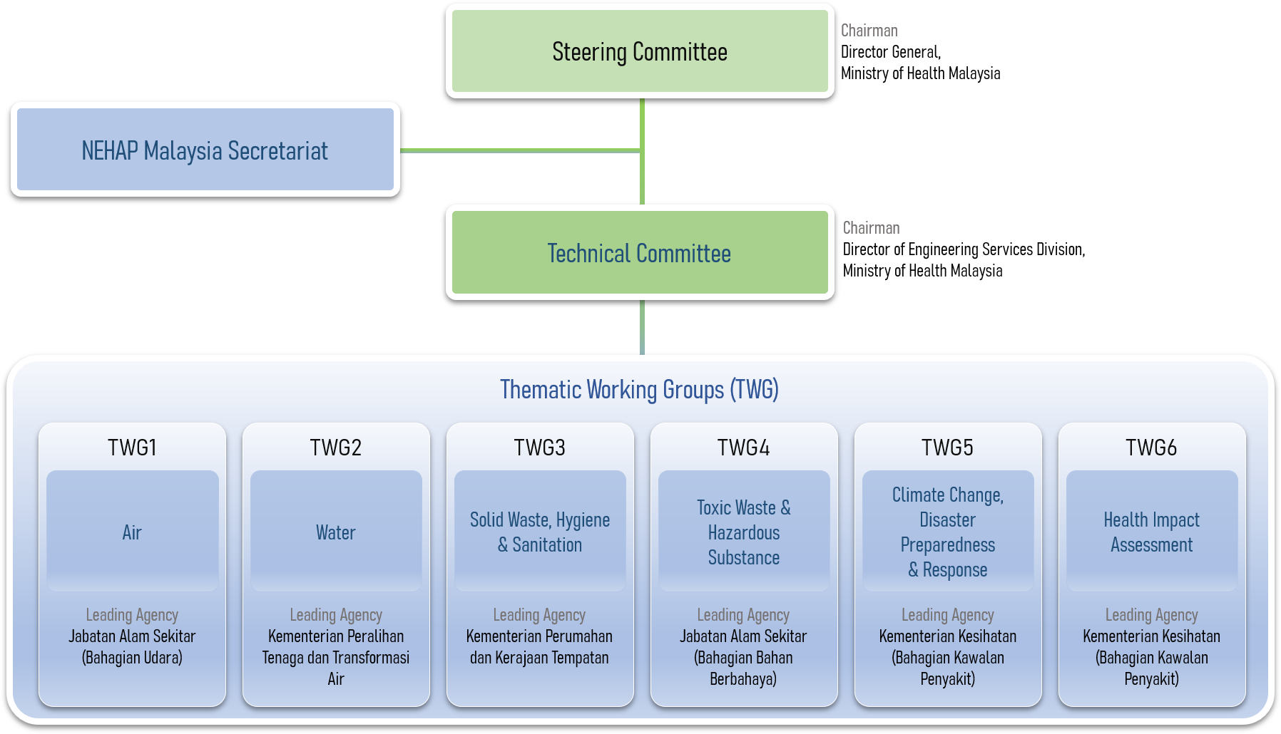 On 5 December 2012, the Cabinet agreed to the proposal for the Ministry of Health Malaysia to establish and coordinate NEHAP to address national issues and needs related to environmental health, following the country’s commitments at the international level.